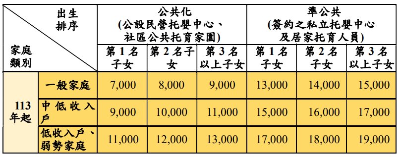 📍【托育補助】