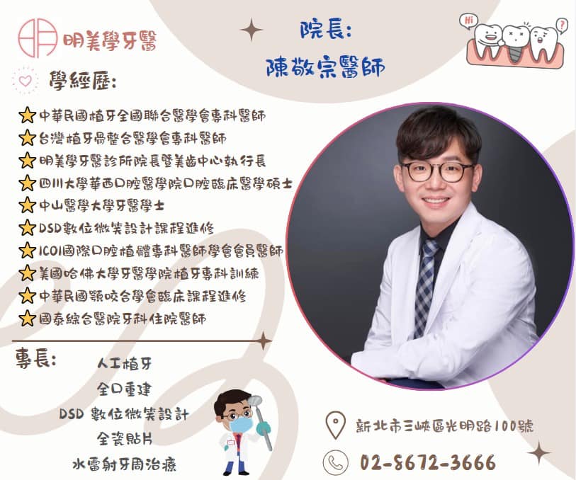 在植牙、全口重建等療程上,明美學牙醫診所採用數位化設備與多元治療方案,依個人口腔條件量身打造重建計畫,兼顧功能與美觀。鄰近三峽老街牙醫生活圈,交通便利,是許多家庭口碑相傳的北大牙醫推薦與值得信賴的牙醫診所選擇。